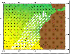 The Canary Current system contains coastal upwelling, filaments, and eddies (Johnson and Stevens 2000). Eddies with length scales of 100 to 300 km form along the coastal boundary of the current. The eddy kinetic energy values for the Canary Current are less than 100 cm2 s2.
