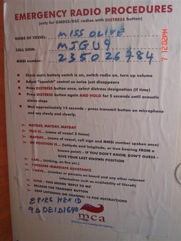 TODAYS PHOTO - Emergency Calling Card next to the onboard radio