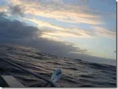 Fantastic day. Good strong winds. Clear blue sky. Getting settled into a routine. Hands starting to get sore with the rowing. No shower for 1 week as yet. Just using baby wipes.