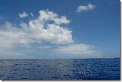 Dead calm with neither wave nor ripple or swell. An unbroken 360 degree horizon all around and 4 km of still water below with great visibility for diving. You can see fish swimming 20 ft below the boat.