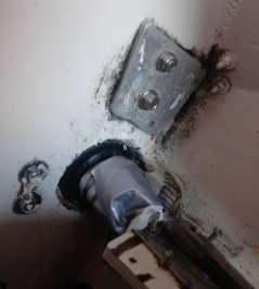 I been able to narrow down the source to 3 possible places on the fiberglass back. First, the valve where the cable for the foot steering goes thru to the outside (todays photo 1). Second, the joints of the fiberglass panel that holds the rudder in place. Third, the joints of the metal panel that re-enforces a mooring loop on the outside (todays photo 2).