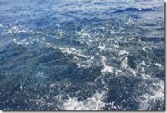 I was hanging half out of the rear cabin, applying my blue-tracer toothpaste to the joints on the outside of the boat. My eyes have gotten used to watching nothing but blue sky and water and my senses are ever more in tune with the surroundings. I find that I quickly notice any sound or activity, like unusually bubbly or agitated water, that has not been naturally caused by a wave.