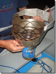 The problem with the Force10 cooker has finally been resolved with a bit of Russian style improvisation. As I wrote earlier, the corrosion in the burner was producing a yellow flame, unsuitable for use. The burner has been taken apart and replaced with a Camping Gaz burner locally available. After a bit of destructive metal cutting and soldering, we manged to adapt the Camping Gaz burner. The bad news is that the 14 existing canisters of Propane on board were promptly rendered unusable, due to a difference in ring sizes on the Camping Gaz cartridges and Force10 cartridges. As they say, the devil is in the details. For the sake of standardization, I wish Microsoft also made Propane cartridges. The good news is that we do not have to ship a replacement cooker from Canada, the only place it is available, as it is not certified for sale anywhere in the EU. In addition, I have three extra replacement burners, available locally, which can be replaced at sea in case of corrosion.