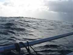 Last night was rough with waves breaking over the stern and some rain. For the past 2 weeks, the winds have been near gale conditions, around 35 knots, NNE and the wave height around 4 meters (12 feet). Making fair progress SW, but trying to make more progress due W. Cannot row beam on to the waves as much as I would like to due to the wave height and the risk of being capsized.