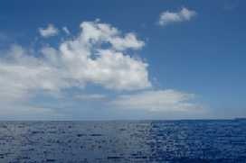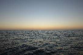 Dead calm with neither wave nor ripple or swell. An unbroken 360 degree horizon all around and 4 km of still water below with great visibility for diving. You can see fish swimming 20 ft below the boat.