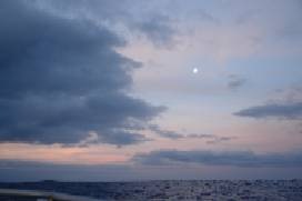 Maybe staying up all night was worth it after all. I got the rare chance of watching the Sun rising to the West with the full Moon setting to the East at the same time. (The quality of the photos, posted here does not do justice to the view, unfortunately, this is a very slow satellite connection of 9 kbps. Will post better quality images when I reach land.)