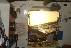 View from inside the Cabin – Sun setting in the West, just off the bow