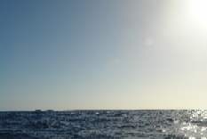 Blue on Blue – Clear cloudless skies all around. Flat horizon in the afternoon with calm seas. Water desert all around.
